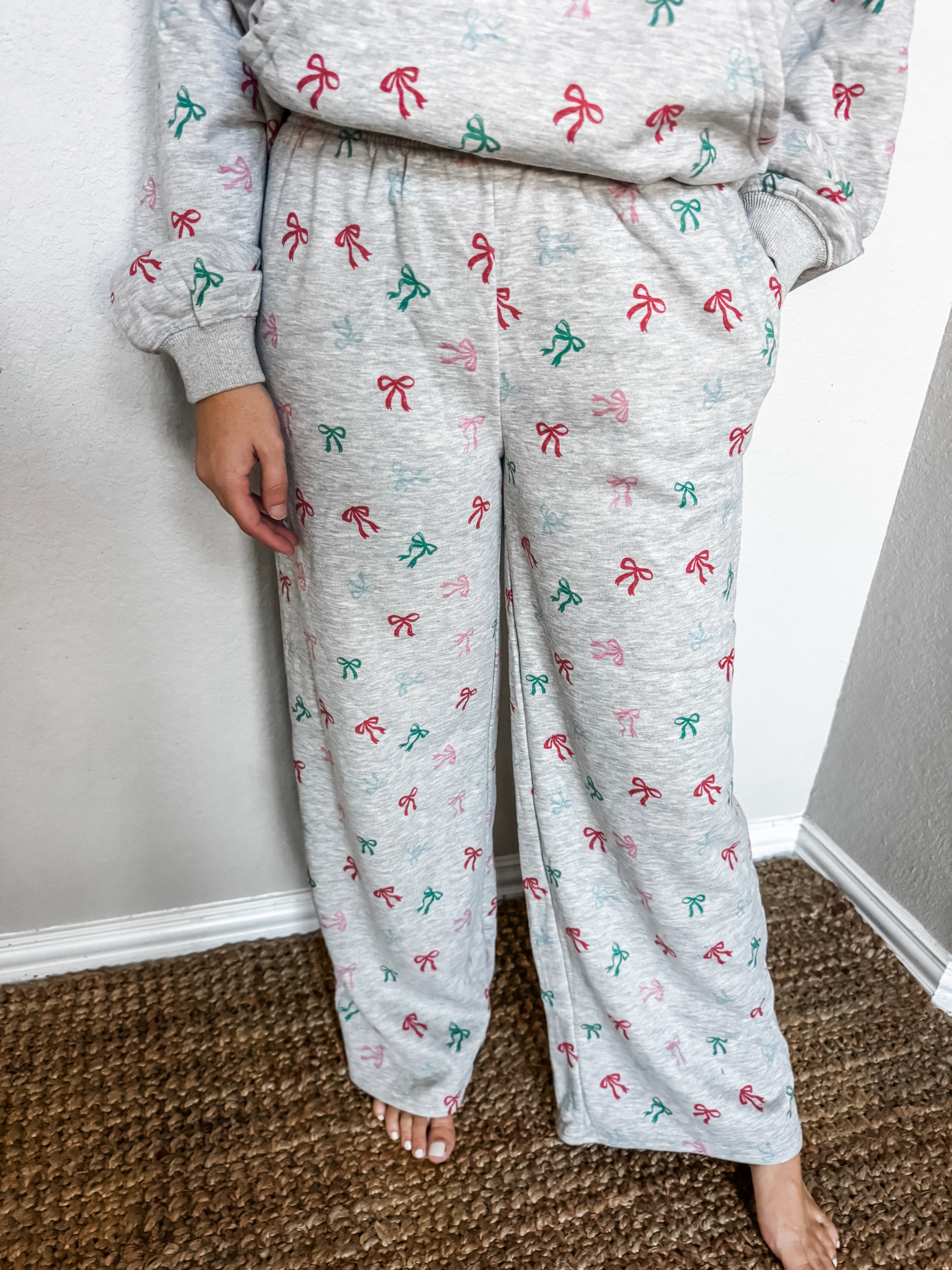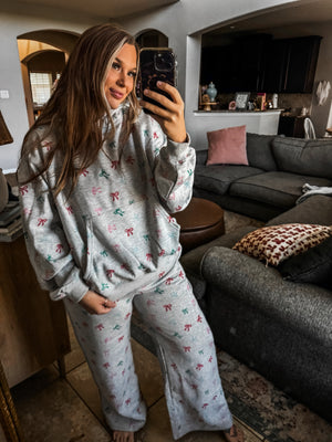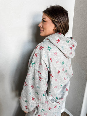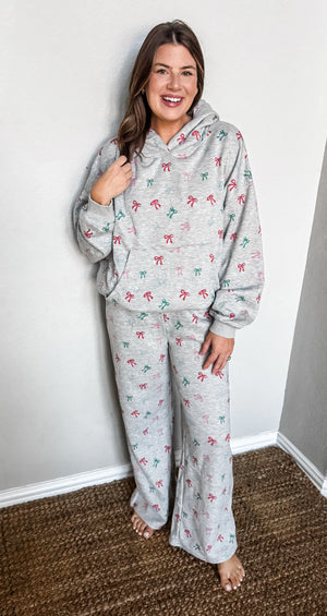 Stay cozy and stylish all season long with our Bow on the Go Hoodie/Pant Set! Featuring adorable all-over bow detailing in blue, pink, red, and green, this outfit is perfect for the colder months. Stay warm and look cute - what more could you ask for? (Hint: nothing!)