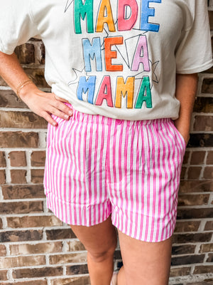 Get ready to strut your stuff in the Sweet Stripes Short in Pink – the ultimate combo of comfy and cute! Perfect for lounging or around town. Jump into style and comfort, you trendsetter you!